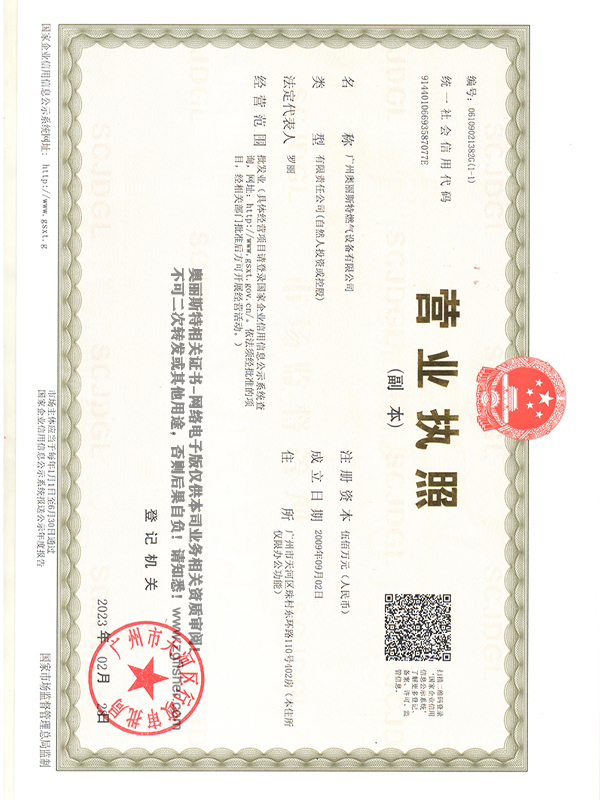 營業(yè)執(zhí)照-廣州奧麗斯特燃氣設備有限公司